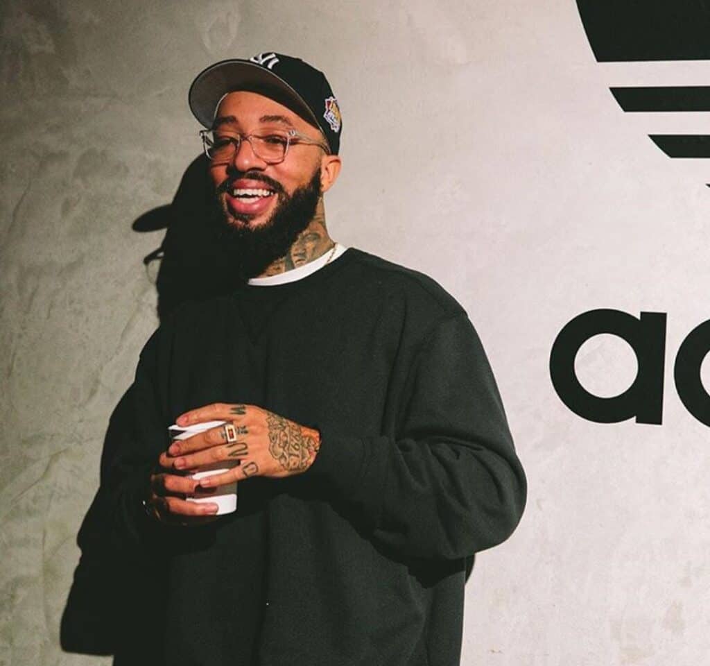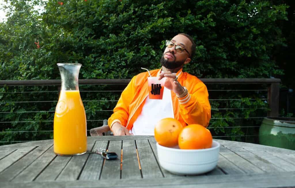 Keeping true to the organic theme presented throughout ALL of Larry’s music, June has two organic orange trees on stage that instantly catches the crowds attention right away. As the stage lights get dark, the music for “Just Me & You” starts to play throughout the speakers. Wearing a vintage multicolored Ralph Lauren bucket hat, and a vintage Ralph Lauren striped polo, Larry June was welcomed with roaring applause from the crowd as he stood in front of the orange trees mentioned earlier.