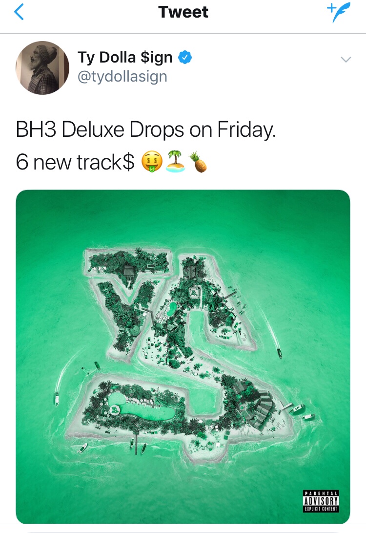 Ty Dolla $ign took to his Twitter to announce that he’s releasing a deluxe album version of his 2017 Beach House 3. The deluxe album will feature 6 new tracks including the latest single ‘Pineapple’ featuring Gucci Mane and Quavo.
