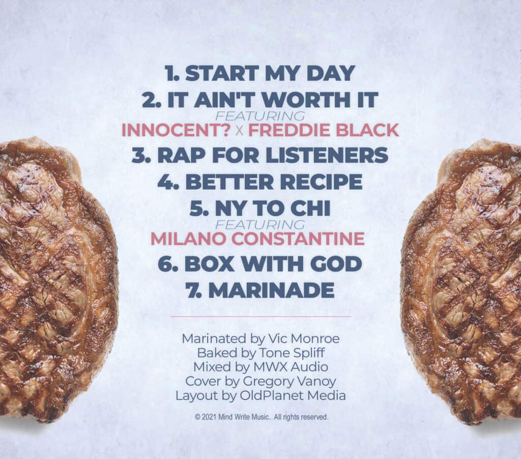 Vic Monroe and Tone Spliff release an emcee/producer project titled ‘Marinade.’ The 7-track album features Milano Constantine (DITC), Innocent?, Freddie Black, and is available on major platforms.
